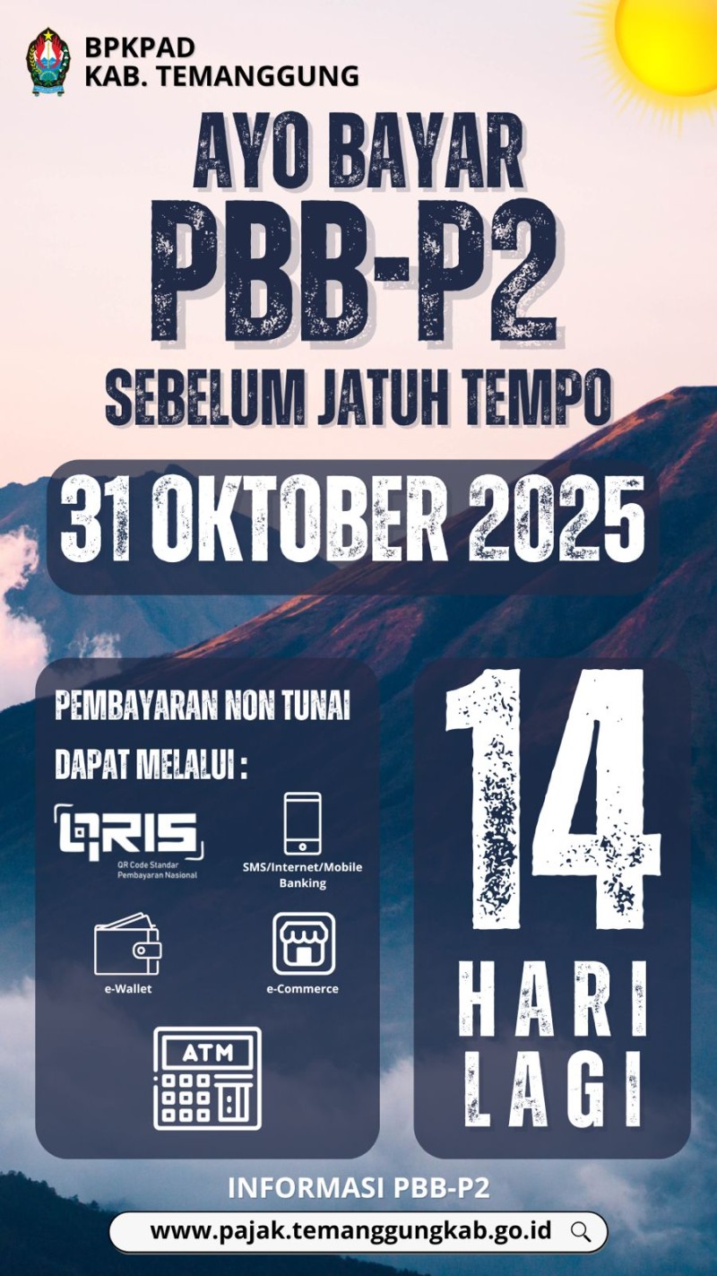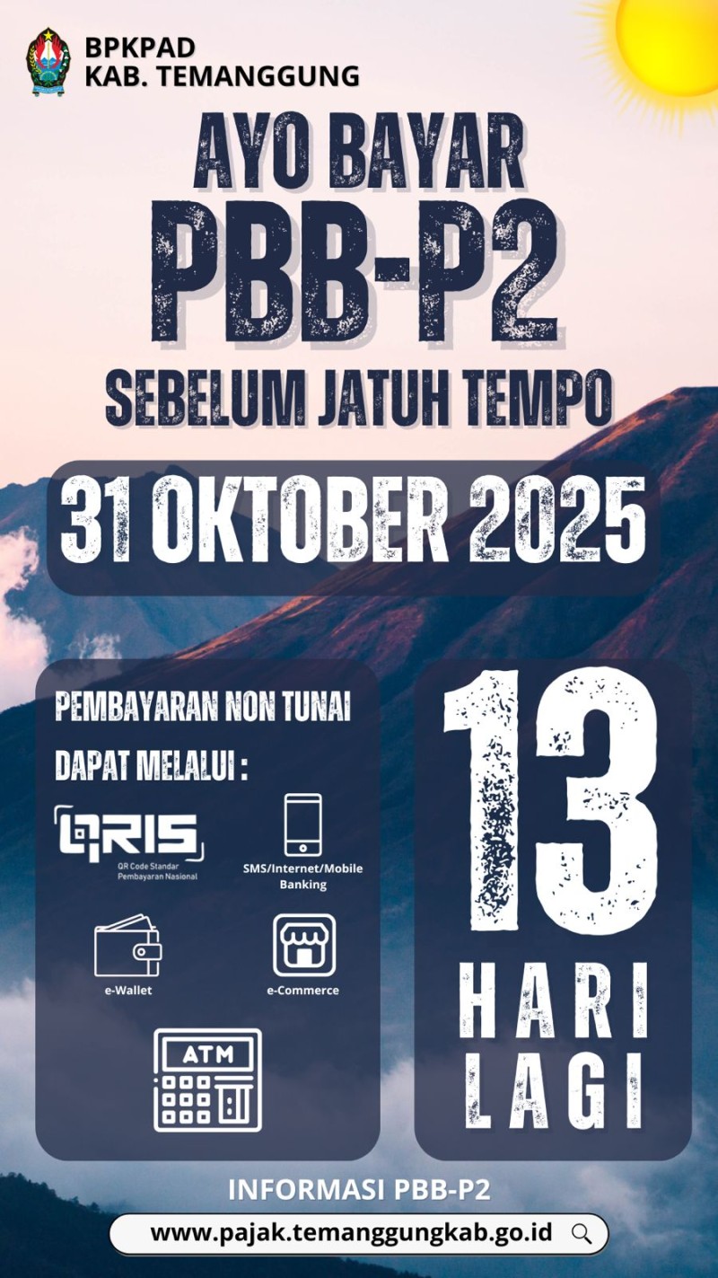 Berita Kategori: Smart Environtment (Lingkungan Cerdas) Sekretariat Rabu, 22/10/2025 08:00 17 SELAMAT HARI SANTRI NASIONAL Selengkapnya Kategori: Smart Government (Pemerintah Cerdas) Bidang Perencanaan dan Penetapan Pendapatan Rabu, 22/10/2025 08:00 20 AYO BAYAR PBB P2 Selengkapnya Kategori: Smart Government (Pemerintah Cerdas) Bidang Perencanaan dan Penetapan Pendapatan Selasa, 21/10/2025 08:00 13 AYO BAYAR PBB P2 Selengkapnya Kategori: Smart Government (Pemerintah Cerdas) Bidang Perencanaan dan Penetapan Pendapatan Senin, 20/10/2025 08:00 18 AYO BAYAR PBB P2 Selengkapnya Kategori: Smart Environtment (Lingkungan Cerdas) Sekretariat Minggu, 19/10/2025 08:00 16 AYO BAYAR PBB P2 Selengkapnya Kategori: Smart Government (Pemerintah Cerdas) Sekretariat Sabtu, 18/10/2025 09:00 18 GOVERNMENT AUTO SHOW TEMANGGUNG 2025 Selengkapnya Kategori: Smart Government (Pemerintah Cerdas) Bidang Perencanaan dan Penetapan Pendapatan Sabtu, 18/10/2025 08:00 13 AYO BAYAR PBB P2 Selengkapnya Kategori: Smart Government (Pemerintah Cerdas) Bidang Perencanaan dan Penetapan Pendapatan Jumat, 17/10/2025 08:00 17 AYO BAYAR PBB P2 Selengkapnya Kategori: Smart Branding (Merek Cerdas) Bidang Perencanaan dan Penetapan Pendapatan Kamis, 16/10/2025 08:00 45 AYO BAYAR PBB P2 Selengkapnya Kategori: Smart Government (Pemerintah Cerdas) Sekretariat Rabu, 15/10/2025 09:00 16 Monitoring & Evaluasi PBB-P2 di Lingkup Kecamatan Pringsurat. Selengkapnya Kategori: Smart Government (Pemerintah Cerdas) Bidang Perencanaan dan Penetapan Pendapatan Rabu, 15/10/2025 08:00 12 AYO BAYAR PBB P2 Selengkapnya Kategori: Smart Government (Pemerintah Cerdas) Bidang Perencanaan dan Penetapan Pendapatan Selasa, 14/10/2025 08:00 17 AYO BAYAR PBB P2 Selengkapnya FirstPrev34567NextLast
