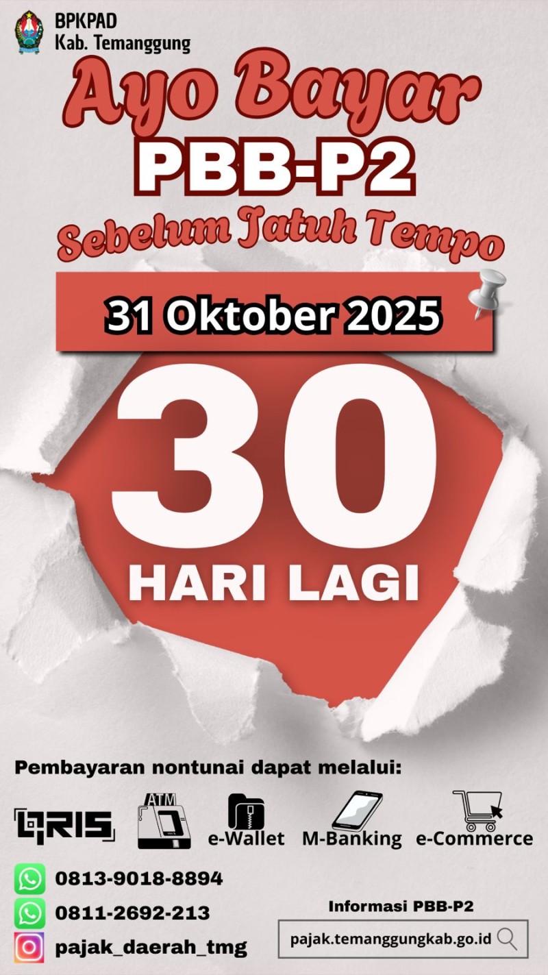 Berita Kategori: Smart Government (Pemerintah Cerdas) Bidang Perencanaan dan Penetapan Pendapatan Selasa, 30/09/2025 09:00 215 SIAP PAKDE Selengkapnya Kategori: Smart Government (Pemerintah Cerdas) Bidang Perencanaan dan Penetapan Pendapatan Selasa, 30/09/2025 08:00 12 AYO BAYAR PBB P2 Selengkapnya Kategori: Smart Government (Pemerintah Cerdas) Bidang Perencanaan dan Penetapan Pendapatan Minggu, 28/09/2025 09:00 38 PERSYARATAN PERMOHONAN SALINAN SPPT PBB-P2 Selengkapnya Kategori: Smart Government (Pemerintah Cerdas) Bidang Perencanaan dan Penetapan Pendapatan Kamis, 25/09/2025 09:09 35 PERSYARATAN PERMOHONAN OBYEK BARU PBB-P2 Selengkapnya Kategori: Smart Government (Pemerintah Cerdas) Sekretariat Kamis, 25/09/2025 09:00 34 PERSYARATAN PERMOHONAN KEBERATAN/PENGURANGAN PBB-P2 Selengkapnya Kategori: Smart Government (Pemerintah Cerdas) Bidang Perencanaan dan Penetapan Pendapatan Kamis, 25/09/2025 09:00 33 PERSYARATAN PENGHAPUSAN SPPT PBB-P2 Selengkapnya Kategori: Smart Government (Pemerintah Cerdas) Bidang Perencanaan dan Penetapan Pendapatan Kamis, 25/09/2025 09:00 26 PERSYARTAAN PERMOHONAN MUTASI PBB-P2 Selengkapnya Kategori: Smart Government (Pemerintah Cerdas) Bidang Perencanaan dan Penetapan Pendapatan Kamis, 25/09/2025 09:00 10 PERMOHONAN LEGALISASI SPPT PBB-P2 Selengkapnya Kategori: Smart Government (Pemerintah Cerdas) Bidang Perencanaan dan Penetapan Pendapatan Kamis, 25/09/2025 09:00 555 PERSYARATAN PEMBETULAN SPPT PBB-P2 Selengkapnya Kategori: Smart Government (Pemerintah Cerdas) Sekretariat Rabu, 24/09/2025 09:00 19 DIRGAHAYU IPPAT KE 38 Selengkapnya Kategori: Smart Government (Pemerintah Cerdas) Sekretariat Sabtu, 20/09/2025 08:00 11 SELAMAT HUT KEJAKSAAN RI Selengkapnya Kategori: Smart Government (Pemerintah Cerdas) Sekretariat Kamis, 18/09/2025 13:00 287 PENGUMUMAN LELANG BMD MELALUI E-AUCTION OPEN BIDDING Selengkapnya FirstPrev678910NextLast